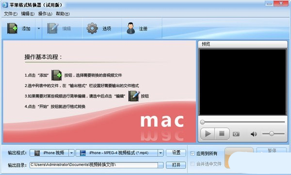 完美支持蘋(píng)果手持產(chǎn)品音視頻格式快速轉(zhuǎn)換;能夠把各種常見(jiàn)的視頻格式快速轉(zhuǎn)換為iphone/iPad/iPod播放的格式;