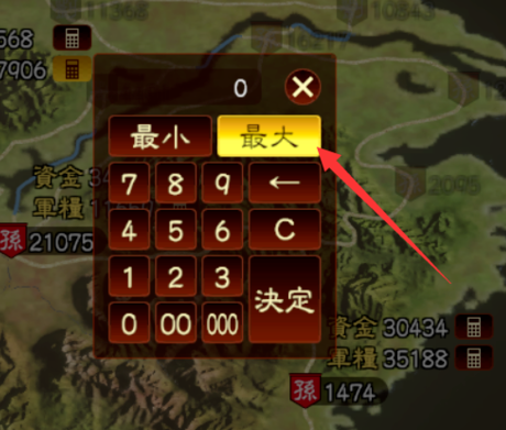 之后找到一個(gè)都市錢糧比較多的,點(diǎn)一下錢糧旁邊的計(jì)算器,輸入一個(gè)數(shù)值,這個(gè)數(shù)值是給這個(gè)都市留下的錢糧。