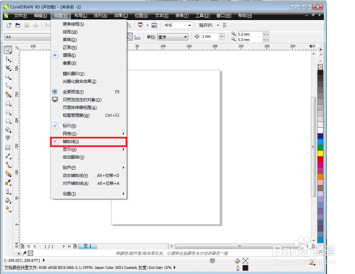 一、使用Coreldraw X6輔助線功能首先打開文檔中“視圖”在下拉的菜單中勾選“輔助線”這個(gè)選項(xiàng)。那么這項(xiàng)功能就會在菜單欄上顯示。