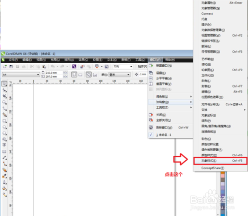 在右側(cè)彈出的窗口中選擇“對象樣式”按鈕,也可以選擇快捷鍵CTRL+F5的組合鍵會彈出。