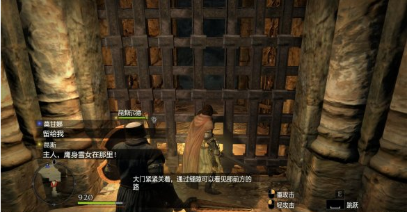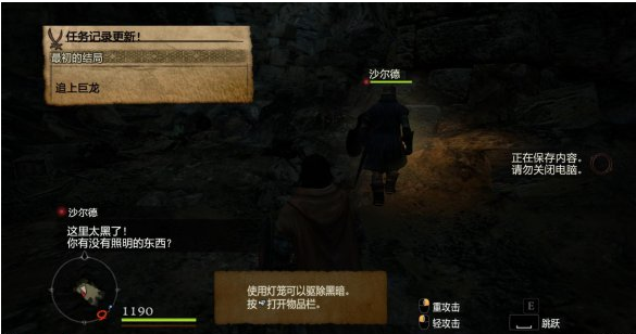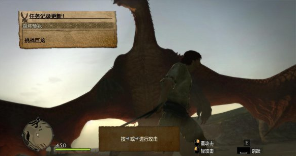 往前走一段就會看到巨龍,這邊操作提示會提醒我們按ALT來格擋,不過這邊沒有戰(zhàn)斗,迅速往前會遭遇雜魚一只,秒殺之。