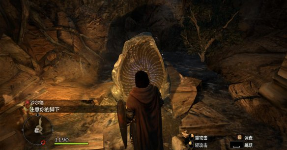來到山洞里,這邊的一塊石頭是可以用來召喚異卒的。按E鍵與石頭互動即可召喚兩名異卒??刂飘愖浜芎唵?,F(xiàn)1命令其前進,F(xiàn)2命令其跟隨,F(xiàn)3命令其協(xié)助作戰(zhàn)。