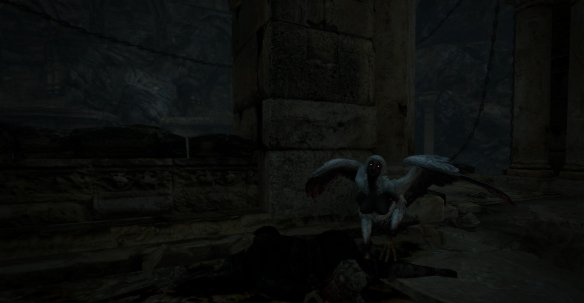 之后持續(xù)往前,會遇到人臉鳥身的怪物,這種怪物可以按CTRL切換技能后用上段攻擊掃擊,也可以等待其俯沖時予以還擊,可以將其打落在地。