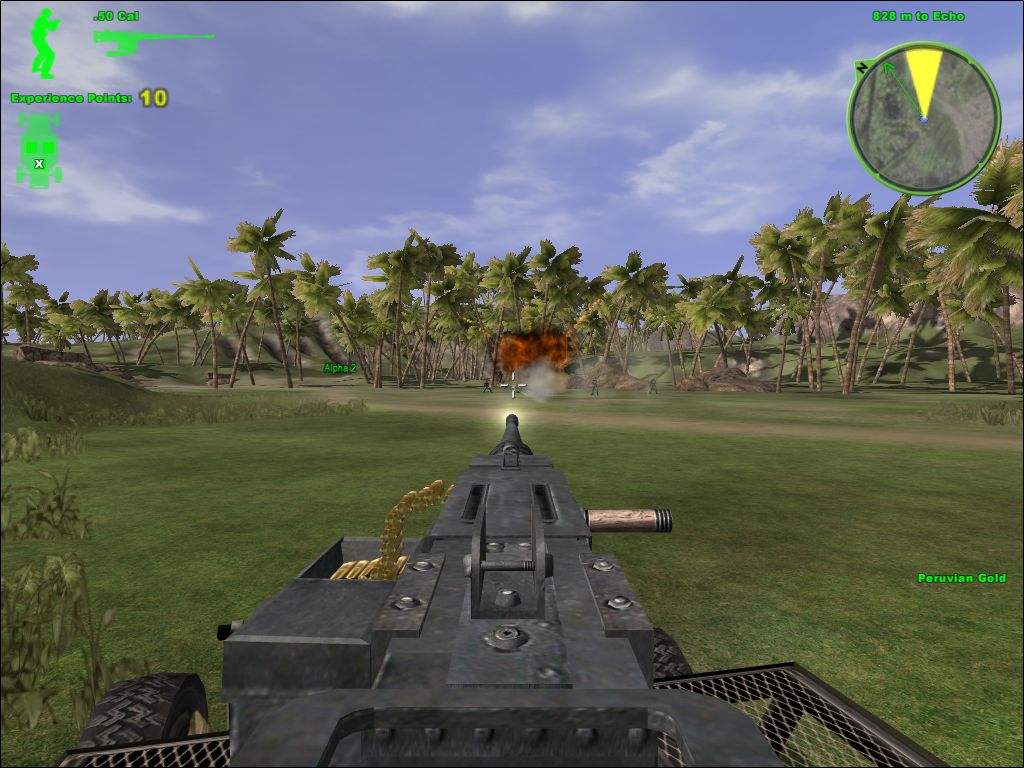 農田村莊戰(zhàn)。乘坐隊友的車子沖向敵基地,主角負責控制炮火,路上小兵盡量殺,碰到吉普要打掉,否則對方會干掉你。到達目的地后,隊友向前沖,主角最好殿后,清掃后方的敵援軍。清掃好了,隊友在前面也打完了,穿過一片罌粟地,路上清理掉兩邊房子,進入村莊,把2間房子里的毒品箱用槍打爆。最后向直升機接送點沖去,把接送點的敵人清掉。本關主要是炮火不好控制,槍支可以隨意,難度2星。