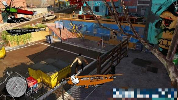 利用上空的繩索滑行以及剛拿到的手槍可以一槍一個暴徒。干掉暴徒后與Floyd再次對話,任務(wù)結(jié)束。