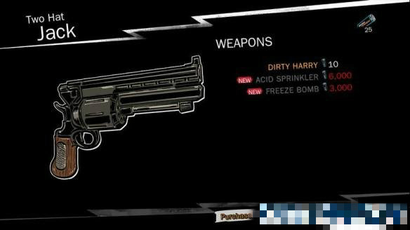 跟隨Walter來到營地,與旁邊售賣槍械的Two Hat Jack對話,在武器一欄中用剛才殺敵獲得的Over Charge飲料購買手槍Dirty Harry。