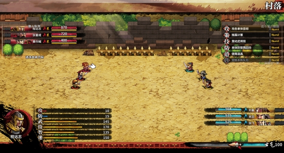 戰(zhàn)斗中劉備會(huì)介紹戰(zhàn)氣值在戰(zhàn)斗中的重要性。此戰(zhàn)需要注意的是計(jì)策的運(yùn)用和熟悉,攻擊性計(jì)策和回復(fù)性計(jì)策,按方向鍵「左右」可以切換范圍為全體和單體,切換全體時(shí)候傷害均分但總額增加。此外己方角色處還會(huì)顯示成功率。集火程遠(yuǎn)志后開(kāi)啟「總攻」便可輕松結(jié)束戰(zhàn)斗。