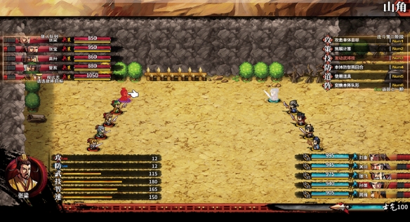 如果強(qiáng)行突破此戰(zhàn),需要提前回幽州恢復(fù)狀態(tài),準(zhǔn)備丹藥。劉備軍只有四人,建議平均等級(jí)為lv5以上,承受住第一波偷襲后,針對(duì)兵力損耗補(bǔ)給恢復(fù),保證兵力安全,再行反擊。優(yōu)先擊退張梁和鄧茂,此二人的計(jì)策容易造成張飛連續(xù)陣亡,戰(zhàn)斗勝利后可獲得造詣「強(qiáng)石之軀」。此時(shí)山洞和東南據(jù)點(diǎn)都已暢通,「初心奮戰(zhàn)」事件關(guān)閉。