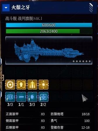 其中上排圖標是艦船的基本屬性,這個我們后續(xù)艦船詳解里會有說明。