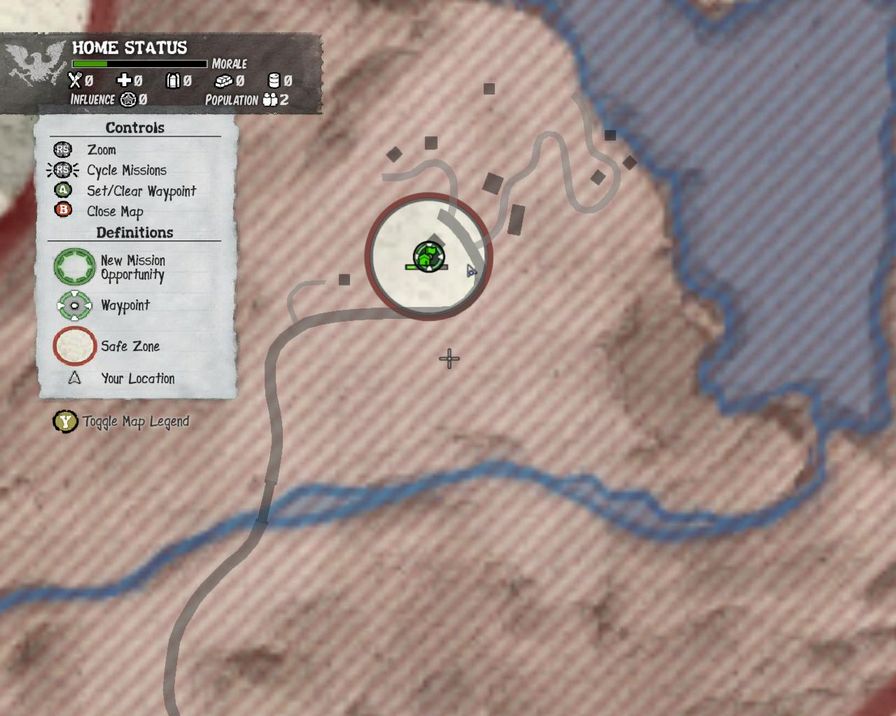 1:地圖中央那塊農(nóng)田里的房子最后都開車晃一遍,說不定就會(huì)發(fā)現(xiàn)“這里有人居住”,而地圖中間發(fā)生喪失圍城的概率是最高的,嗯嗯,你們都懂的。