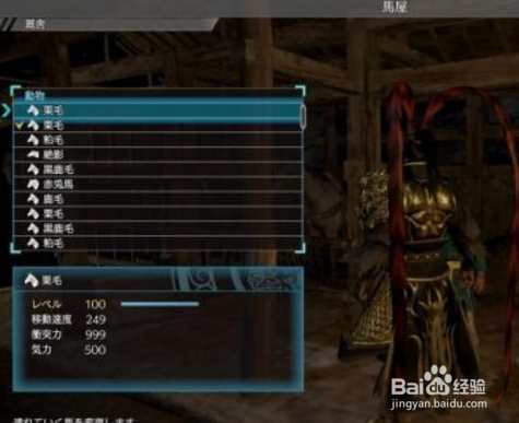 馬的能力包括速度、突破力和氣力,其中速度上限為250,突破力上限為999,氣力上限為500。速度決定了馬行進(jìn)的快慢,突破力決定了馬的沖撞能力(比如你撞竹林里的竹子、田野的柵欄等等),氣力則決定馬匹持續(xù)疾馳的時間長短。