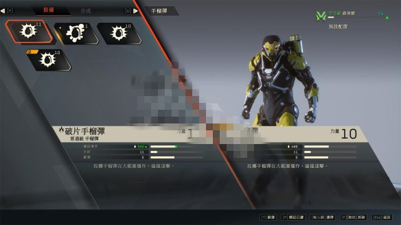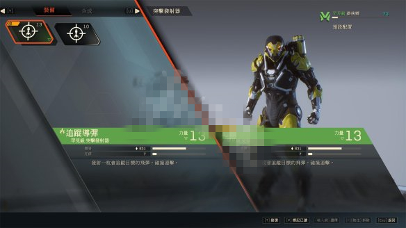 武裝系統(tǒng)★武裝系統(tǒng)分為突擊發(fā)射器,武器,手榴彈,配件,輔助裝備,其中武器可以攜帶兩把。
