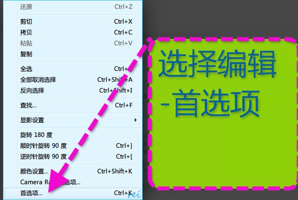 在Adobe Bridge中,選擇編輯>首選項(xiàng),打開對話框。
