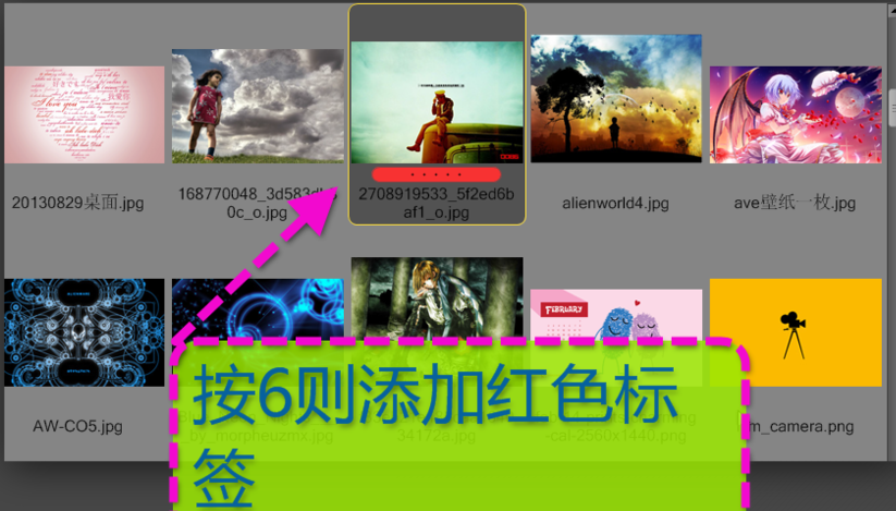 此時,選中圖片,按數(shù)字鍵則可添加顏色標(biāo)簽了,如6添加紅色,再按6則可以取消顏色標(biāo)簽,按其他數(shù)字鍵則自動替換成相應(yīng)標(biāo)簽或評級。
