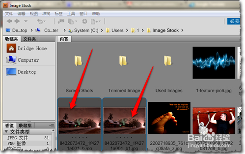 打開Bridge軟件,如果界面是英文,沒有關(guān)系,下面的操作會附上說明。在Bridge中找到你想要對比的兩張圖片,用Ctrl鍵同時選中。