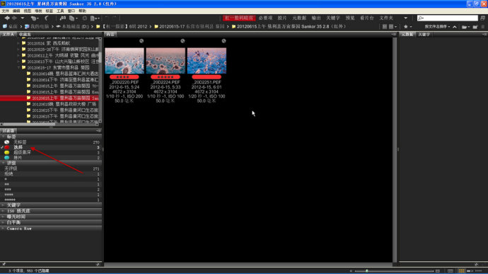 03-3 分類觀看:如勾選3星評級,內(nèi)容框內(nèi)顯示所有3星照片。其他過濾條件的使用類同