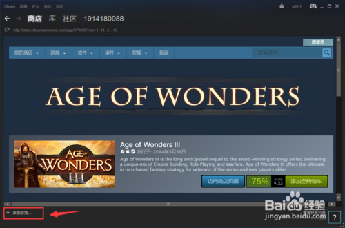進入平臺界面,可以點擊左下角的添加游戲,如下圖所示