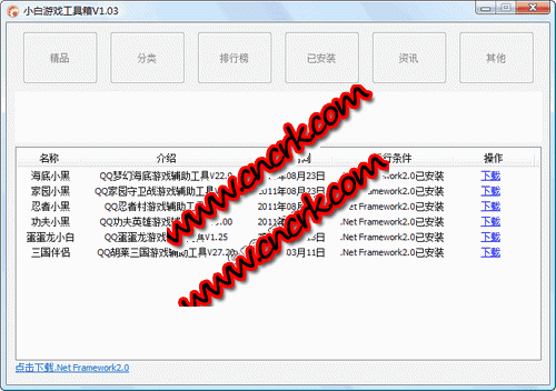 小白游戲工具箱 V1.05 綠色免費版下載 小白游戲工具箱,可以隨時為你提供包括QQ胡菜三國,QQ家園守衛(wèi)戰(zhàn),QQ忍者村等等多達幾十款的QQ游戲的輔助,幫你節(jié)省大量時間,解放雙手,減少各種沒有必要的機械操作,讓你更好的投入到享受游戲的過程當(dāng)中,非常不錯的小白工具箱。