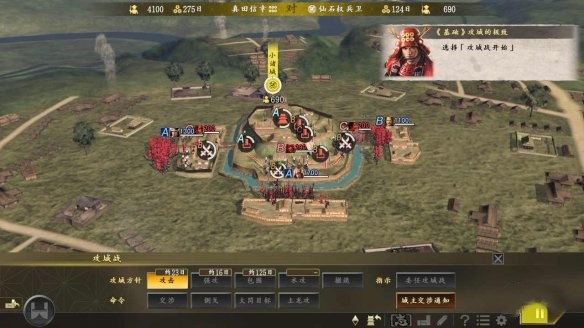 本作全新追加的“攻城戰(zhàn)”以全國(guó)地圖中具代表性的各地名城為戰(zhàn)場(chǎng)。攻城方可逐一攻陷曲輪朝天守前進(jìn),不同的城曲輪數(shù)量與進(jìn)軍路線也會(huì)不同。各曲輪皆有“攻略難度”、“參戰(zhàn)上限”、“耐久”,曲輪的“攻略難度”越高,給予曲輪士兵或“耐久”的傷害越小;士兵數(shù)超過(guò)“參戰(zhàn)上限”時(shí),即便攻擊也無(wú)法給予更多傷害。曲輪的“耐久”為 0 時(shí),籠城部隊(duì)會(huì)后退,但有些城需要攻略好幾層曲輪才可抵達(dá)天守,玩家必須做好萬(wàn)全準(zhǔn)備,才能一面抑制損耗一面攻陷城池。