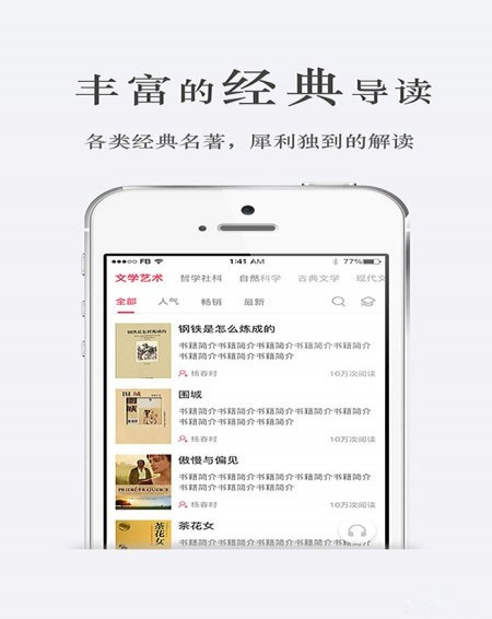 迪豐讀書----十分鐘讀懂一本名著迪豐讀書是全民閱讀的推動者,其使命是幫助中國億萬個學(xué)生及社會大眾愛上閱讀,幫助那些愛讀書、缺少時間讀書、不知道讀哪些書的人群每年吸收100本以上名著的精髓。深度的文字解讀和暖心的精致音頻打造“悅讀”享受。迪豐讀書帶你進(jìn)入書里的人生,演繹不同的精彩人生,碎片時間讀出更好的自己!
