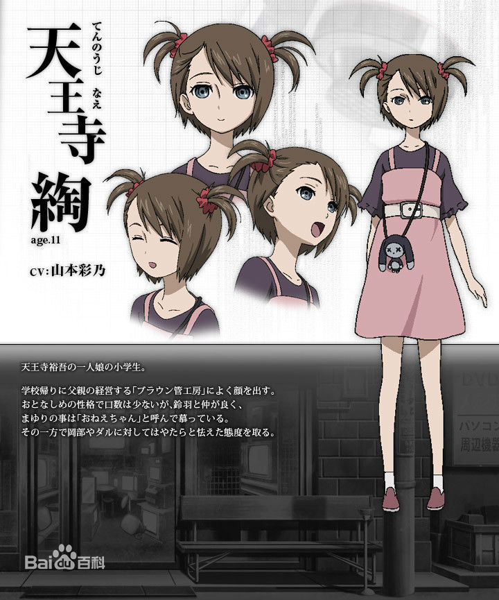 顯像管工房的店長天王寺裕吾的女兒。小時候的绹有點害怕岡部倫太郎和橋田至。和椎名真由理關(guān)系很好,兩人見面的時候經(jīng)常說嘟嘟嚕。