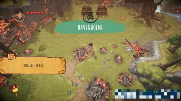 開(kāi)始游戲后,來(lái)到第一個(gè)地圖Havenholme,??ㄆ諄?lái)到這個(gè)被破壞的村莊,見(jiàn)到了玩家控制的主角撩草王。