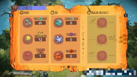 這里可以查看到收集的植物或礦物的數(shù)量,另外還可查看已獲得的武器裝備。