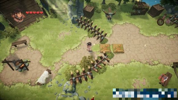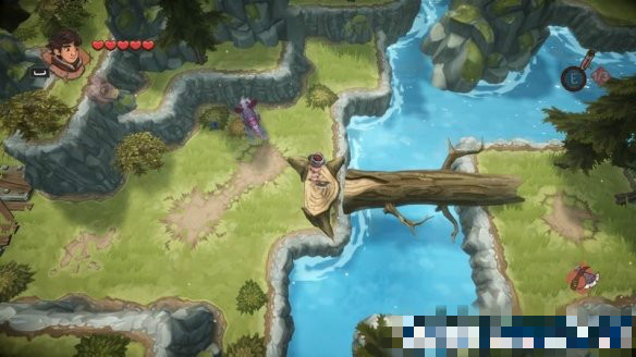 隨后來(lái)到一顆大樹(shù)處,這里會(huì)有教學(xué)如何開(kāi)路,只需將大樹(shù)砍倒便可形成一條路。