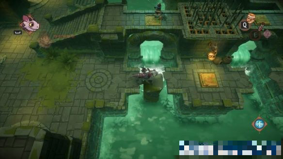 左側(cè)的入口可以通到Boss關(guān)卡前的場(chǎng)景右側(cè),將箱子推下,推動(dòng)到壓板處即可開(kāi)啟入口。