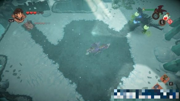 這里需要使用空格鍵切換控制龍,對(duì)水面進(jìn)行噴射即可結(jié)冰形成路繼續(xù)前進(jìn)。