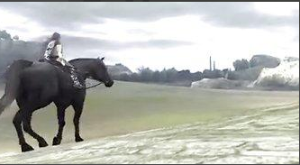 巨像神龜,騎馬把巨像引到噴泉泉眼上面,讓它保持腹部對著泉眼。噴泉的沖擊力掀起巨像,射巨像支撐身體的那兩只腳的腳底板,巨像翻倒仰面朝天。從腿關(guān)節(jié)處上去,抓腹部的毛翻越龜殼邊緣來到龜背,弱點(diǎn)在頭頂。