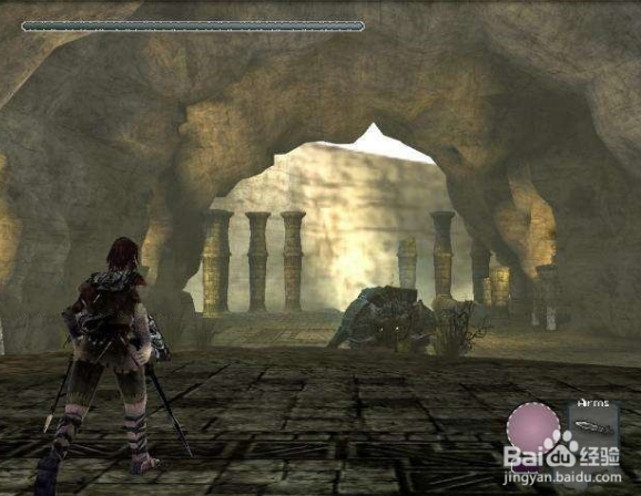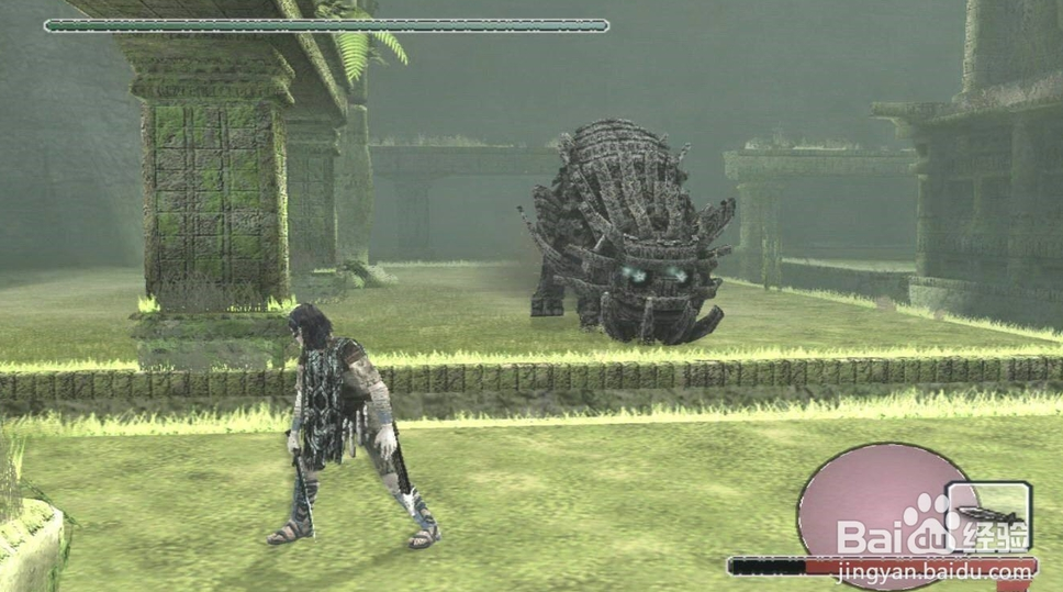 巨像破壞獸,當(dāng)過場動畫結(jié)束巨像向你沖過來時,你會發(fā)現(xiàn)你左側(cè)有個倒了的柱子,爬上這個柱子,從柱子跳到橋上,再從這個橋跳到那個橋,最終你會跳到一個很高的柱子上。它穿過橋底,超出限高的我被刮掉,我爬到橋上,它撞完橋會昏厥,跳它后背猛戳弱點(diǎn)。