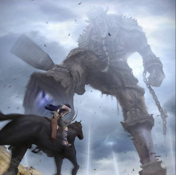 游戲故事講述玩家所扮演的男主角青年 汪達(dá)(Wanda)為了拯救少女MONO的性命,偷了族里的神劍“往昔之劍”,帶著因被詛咒而被奪去靈魂的少女的遺體,騎上愛馬“阿格羅”前往邊陲的“往昔大地”,尋找傳聞中能令人死而復(fù)生的神秘之術(shù)。當(dāng)汪達(dá)抵達(dá)傳聞中的神殿,將少女遺體供于祭壇之上后,天際響起了多爾暝的聲音,告知汪達(dá)如果想要讓他復(fù)活少女的靈魂,就必須破壞神殿中的十六座石像。但那是人類的力量所不能達(dá)到的。唯一的方法,就是打倒隱藏于遠(yuǎn)古之地各處的十六個神秘“巨像”。當(dāng)巨像被打倒后,與它們成對的石像也會被破壞。汪達(dá)與愛馬阿格羅并肩作戰(zhàn),以手中的寶劍與背上的弓箭,與如同小山一般龐大的巨像們戰(zhàn)斗,讓少女重獲生命。每打倒一個巨像,從巨像封印里冒出的黑線就會貫穿汪達(dá)的身體,鉆入汪達(dá)的體內(nèi)。而每一次汪達(dá)都會暈過去,當(dāng)他醒來時,已經(jīng)被多爾暝的力量送回了神殿,聽多爾冥給他的下一個巨像的信息。汪達(dá)以為只要自己做好多爾暝吩咐的事情,女孩就會再次醒來,但是事實(shí)卻是這樣:一直被汪達(dá)當(dāng)作神靈的多爾暝,其實(shí)是惡魔之王。他的靈魂被封印在十六只巨像體內(nèi),而他只是利用了汪達(dá)對女孩的感情,打敗巨像只是為了解開自己的封印。從頭到尾汪達(dá)只是被完完全全的利用了。結(jié)果,當(dāng)汪達(dá)前往第十六只巨像的所在地時,阿格羅載著汪達(dá)跳上一座橋,在快跑到盡頭時橋坍塌了,阿格羅為了救主人,將汪達(dá)甩到了對面。自己掉入了深深的山崖里。