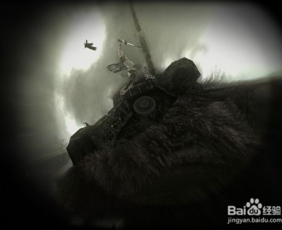 巨像戰(zhàn)馬,離巨像不遠(yuǎn)處有座墳丘,4個洞口,把巨像引到墳丘,進(jìn)洞口等待,巨像在外面不斷敲打,等它敲累了低頭休息,順?biāo)鼉蓷l長長的耳墜爬到頭頂弱點(diǎn)。如果頭頂難立足,就退居后背休息一下,刺后頸一劍會使它低頭,就可以返回頭頂。