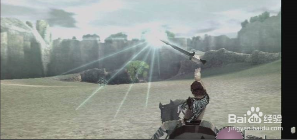 ○鍵:舉劍(舉起劍利用陽光反射出的光線尋找巨像,找準(zhǔn)方向后手柄會出現(xiàn)震動)