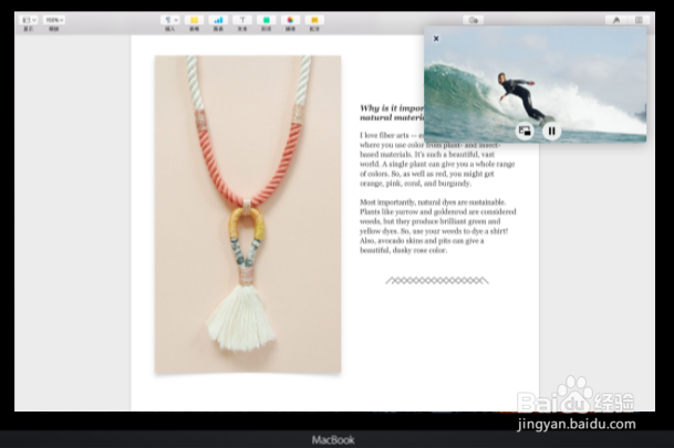 邊看邊做:在 iTunes 中或 Safari 上支持的站點中播放視頻,然后 點按  使視頻浮動在桌面上方的某個角落。在桌面之間輕掃或在全屏幕中使用另一個應(yīng)用時, 您仍可觀看視頻。