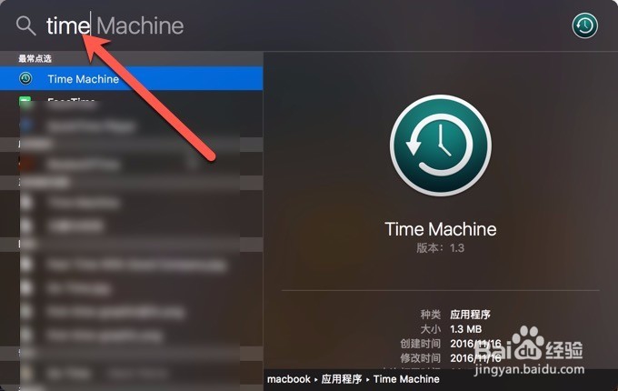 接著按鍵盤cmmand+空格輸入time machine,打開自帶的備份工具。