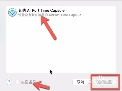 如果是第一次使用會彈出設(shè)置time machine點擊它,然后點擊備份磁盤,沒有插入備份磁盤話就會顯示airport這個網(wǎng)絡(luò)的備份模式,插入后會看到自己的磁盤。然后可以選擇備份加密,這個根據(jù)自己的需要選擇,選擇好了點擊使用磁盤。