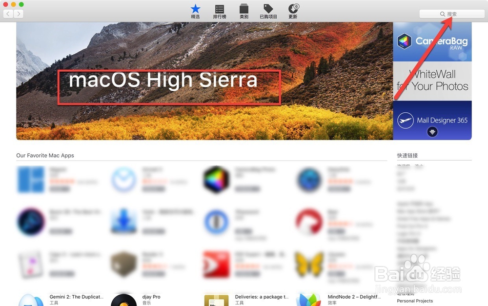 首先是打開App Store,然后在搜索框內(nèi)輸入英文:macos。
