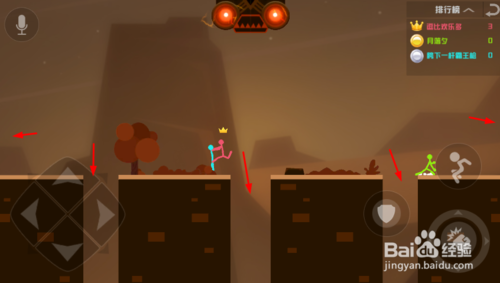 右上方是排行榜,左上角是話筒,可以語音說話。攻擊的時候注意機關,如圖所示