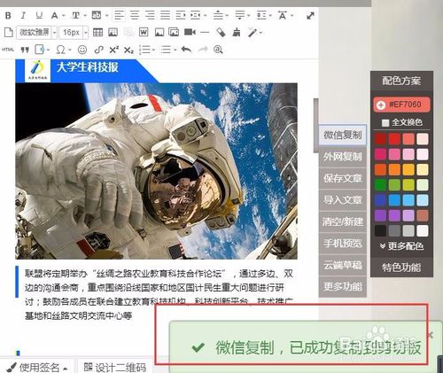 編輯好文章后點擊右邊的“微信復制”