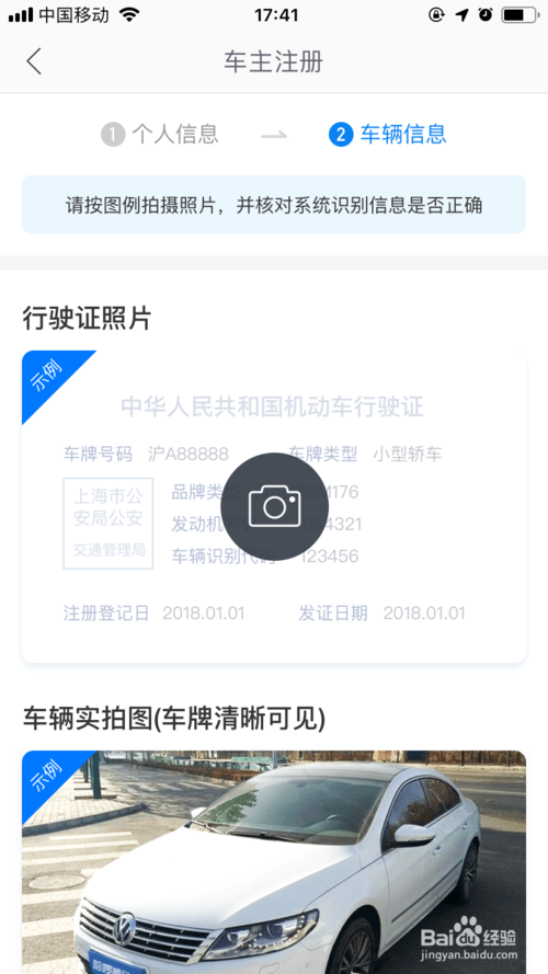 依次按照要求,拍照上傳個(gè)人身份證正面、反面及駕駛證照片,上傳完畢點(diǎn)擊“下一步”,繼續(xù)補(bǔ)充資料