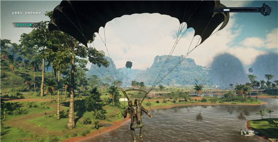 向高處使用抓鉤+降落傘,會讓里科攀登的越來越高。