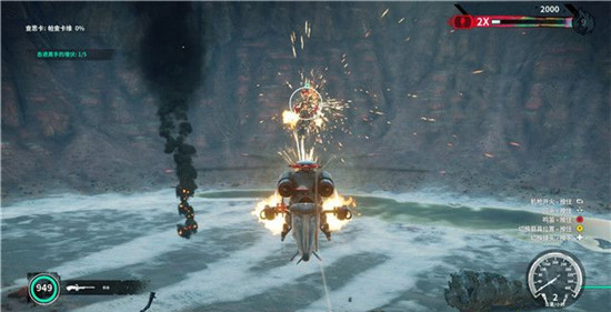 抓鉤升級《正當(dāng)防衛(wèi)》可不是那種“回歸初心”類型的游戲,瑞可裝備的抓鉤一直在進(jìn)化著,如今已經(jīng)成為無比強(qiáng)大的多功能道具了。除了快速移動(dòng)、把敵人物品捆綁在一起之外,抓鉤在流程初期就可以附在火箭推進(jìn)器或者熱氣球上了。這些功能可以有機(jī)結(jié)合到一起(你想打造一輛“飛行火箭巴士”也是可以的),讓你隨心所欲地行動(dòng)。另外不要忘了,你現(xiàn)在可以一次性發(fā)射10條鉤索哦,祝你玩得愉快!