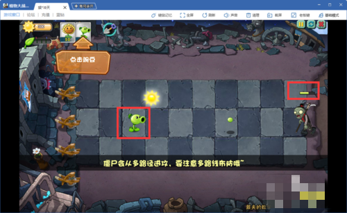 剛開始我們要先放攻擊型豌豆,放在游戲道路那里的,進(jìn)行攻擊僵尸。