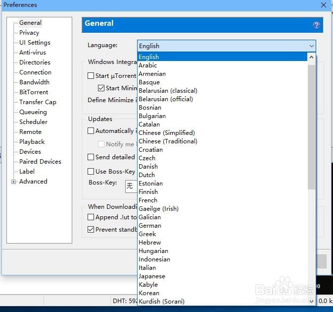 接下來在彈出來的界面中,我們會看到language設(shè)置,我們點擊它,會彈出來一個下拉框,我們選擇中文設(shè)置;參考下圖