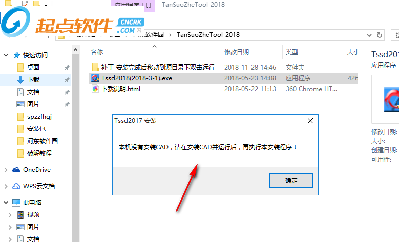 1、打開(kāi)探索者2018安裝界面,提示需要安裝AutoCAD,將軟件安裝到電腦才能啟動(dòng)探索者2018