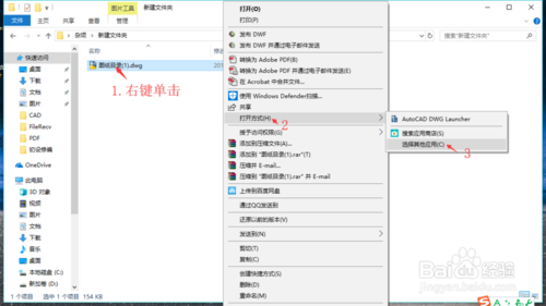 右鍵單擊文件cad文件(.dwg),依次選擇“打開(kāi)方式”,“選擇其他應(yīng)用”。