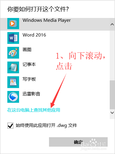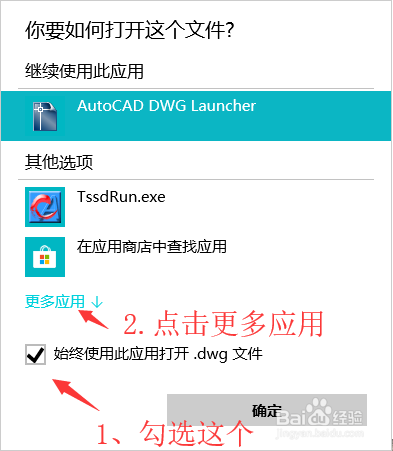 勾選“始終使用此應(yīng)用打開(kāi).dwg文件”,然后選擇“更多應(yīng)用↓”。