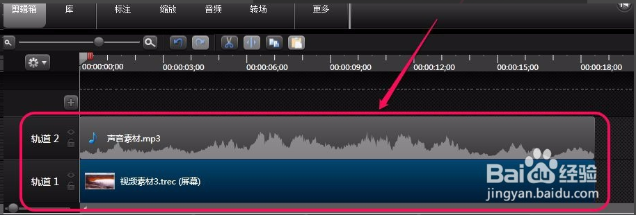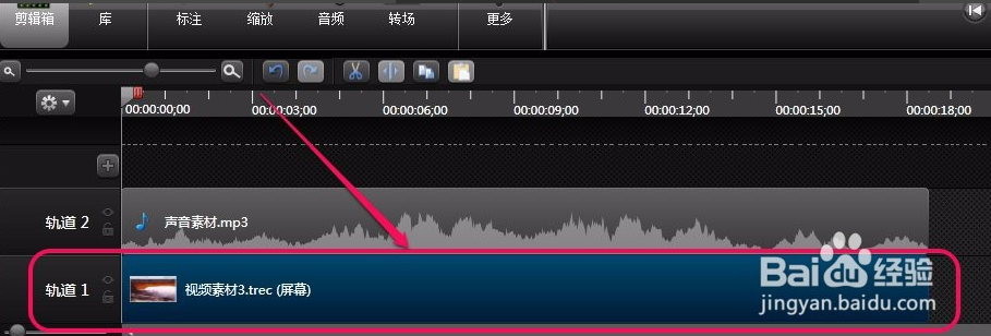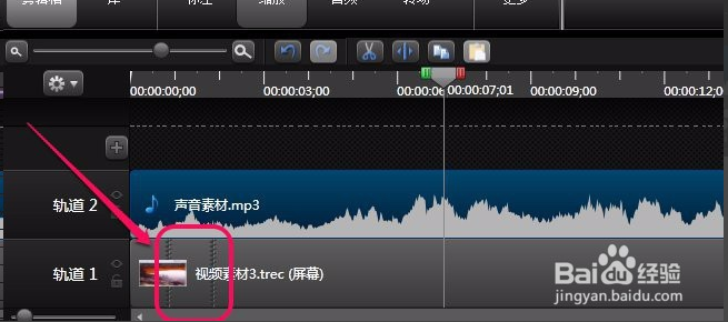 擴展幀首先,我們把視頻素材、聲音素材分別導(dǎo)入到軌道1和軌道2上面。